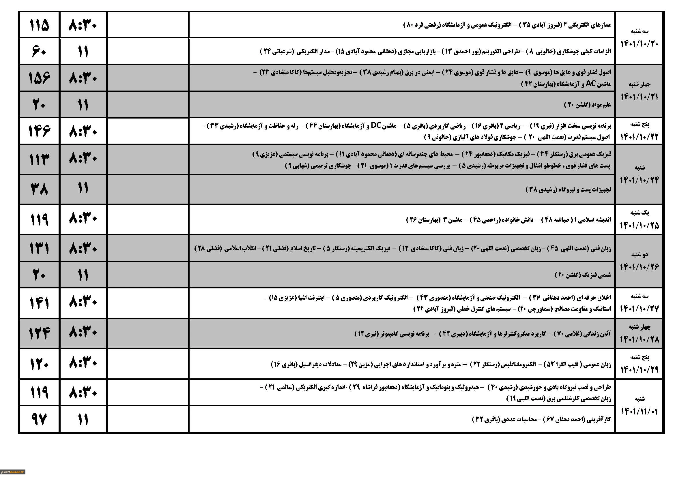 برنامه امتحانات پایان ترم نیمسال اول 1402-1401 4