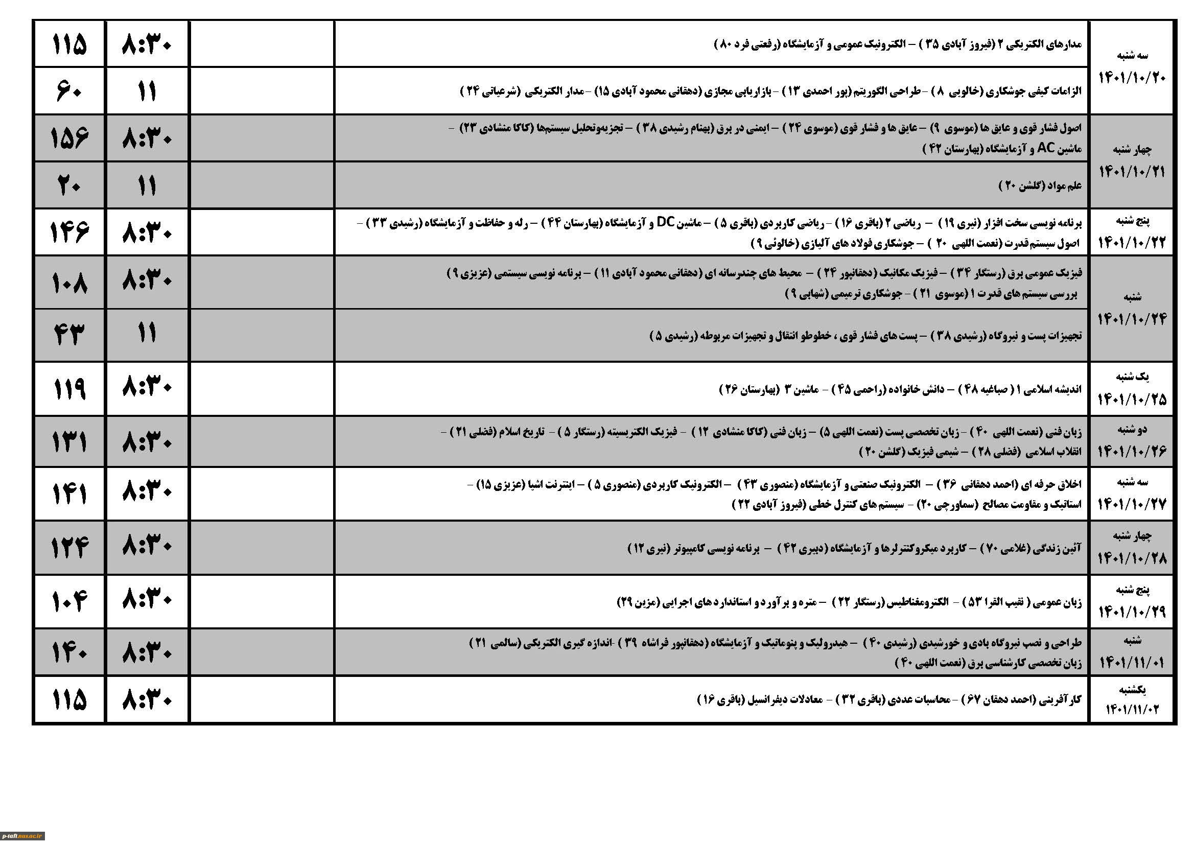 برنامه امتحانات پایان ترم نیمسال اول 1402-1401 5
