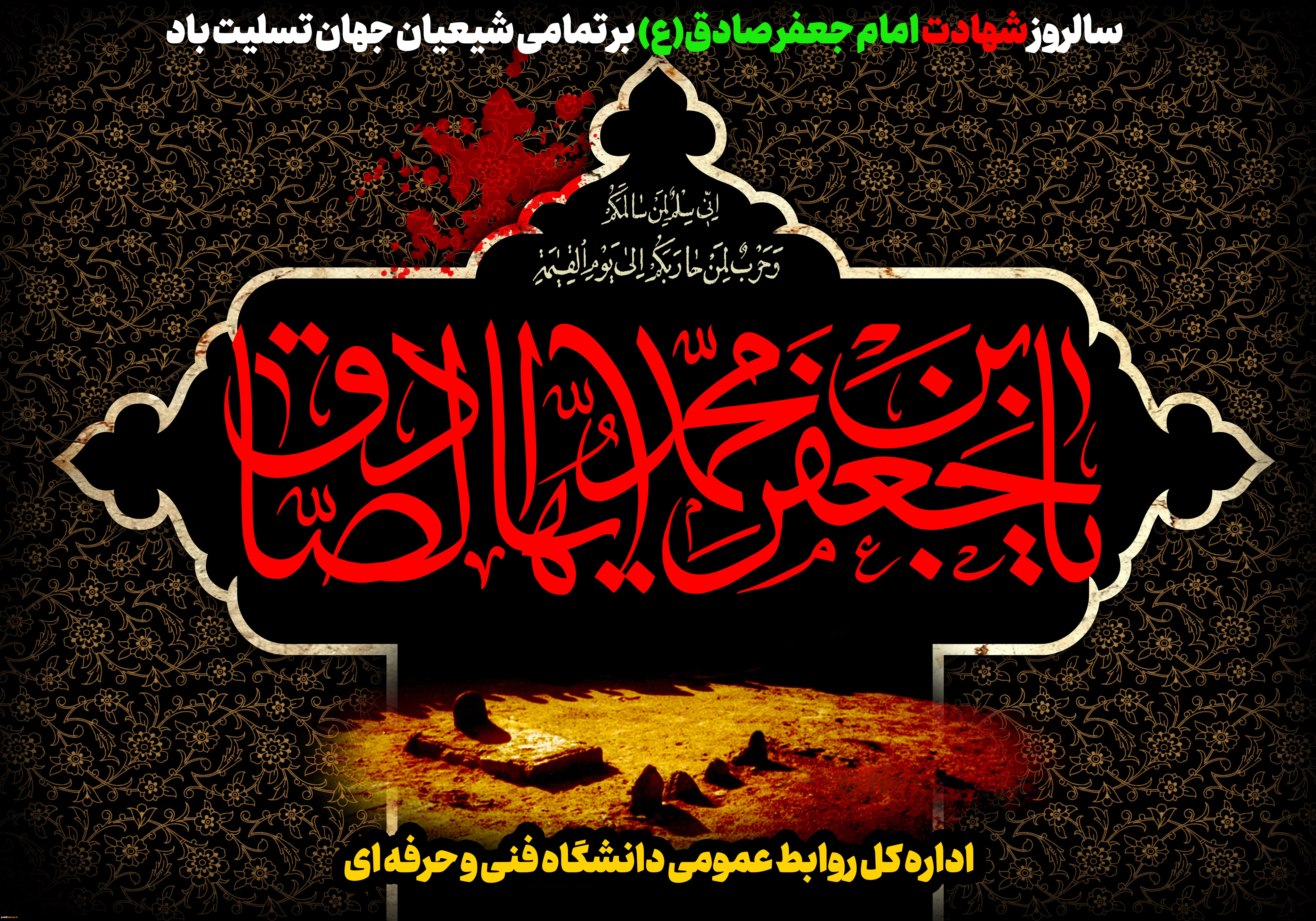 امتیاز دهید : سالروز شهادت امام جعفر صادق(ع) رئیس مذهب تشیع بر تمامی شیعیان جهان تسلیت باد. 2 چهارشنبه 27 اردیبهشت 1402 ساعت 9:41
