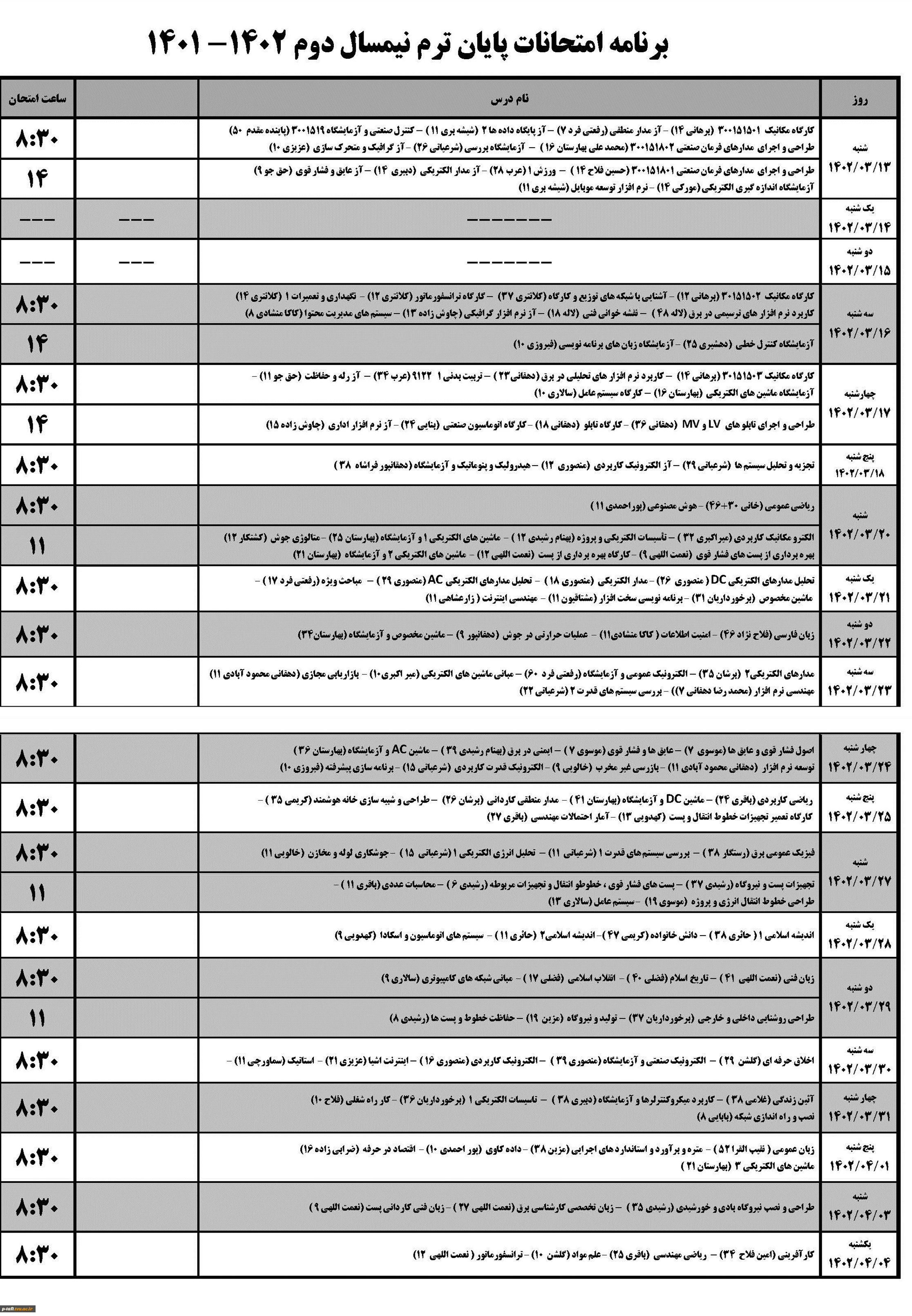 ﺑﺮﻧﺎﻣﻪ اﻣﺘﺤﺎﻧﺎت ﭘﺎﯾﺎن ﺗﺮم ﻧﯿﻤﺴﺎل دوم 1402-1401 2