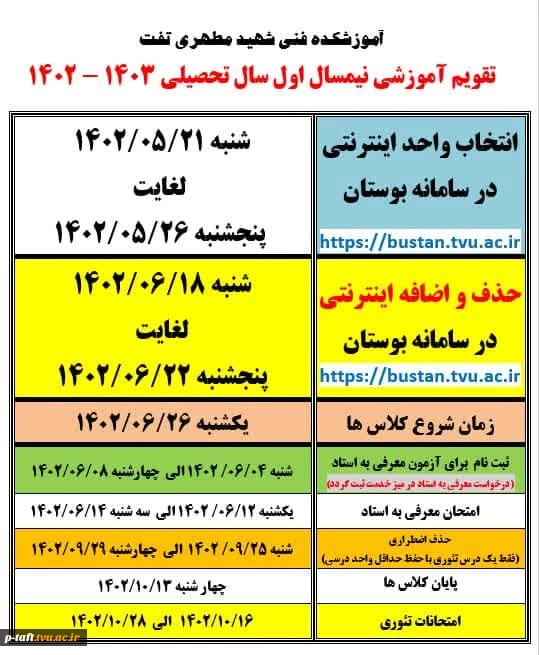 تقویم آموزشی نیمسال اول سال تحصیلی 1403-1402 2