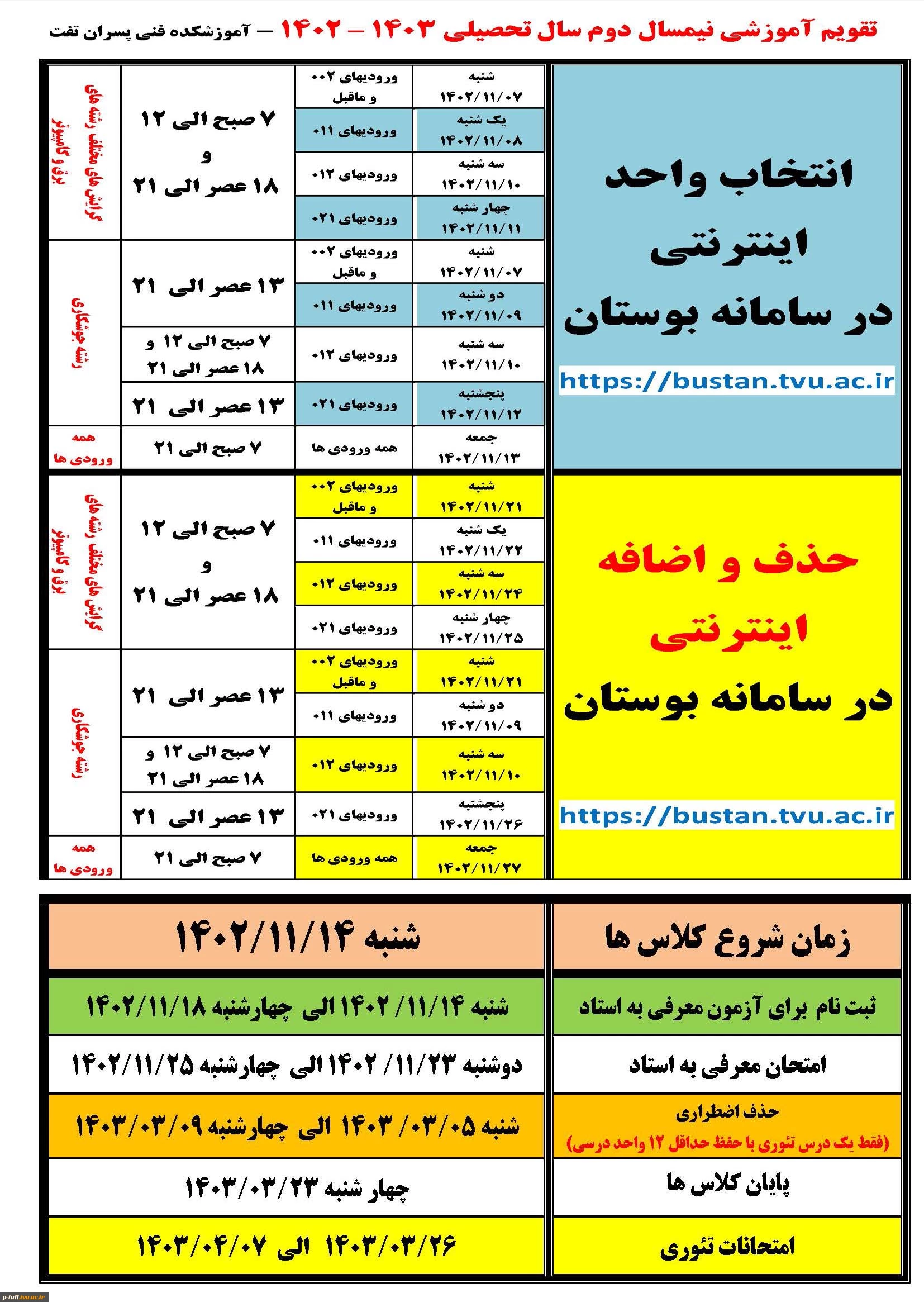 تقویم آموزشی 022 (نیمسال دوم سال تحصیلی 1403-1402) 2