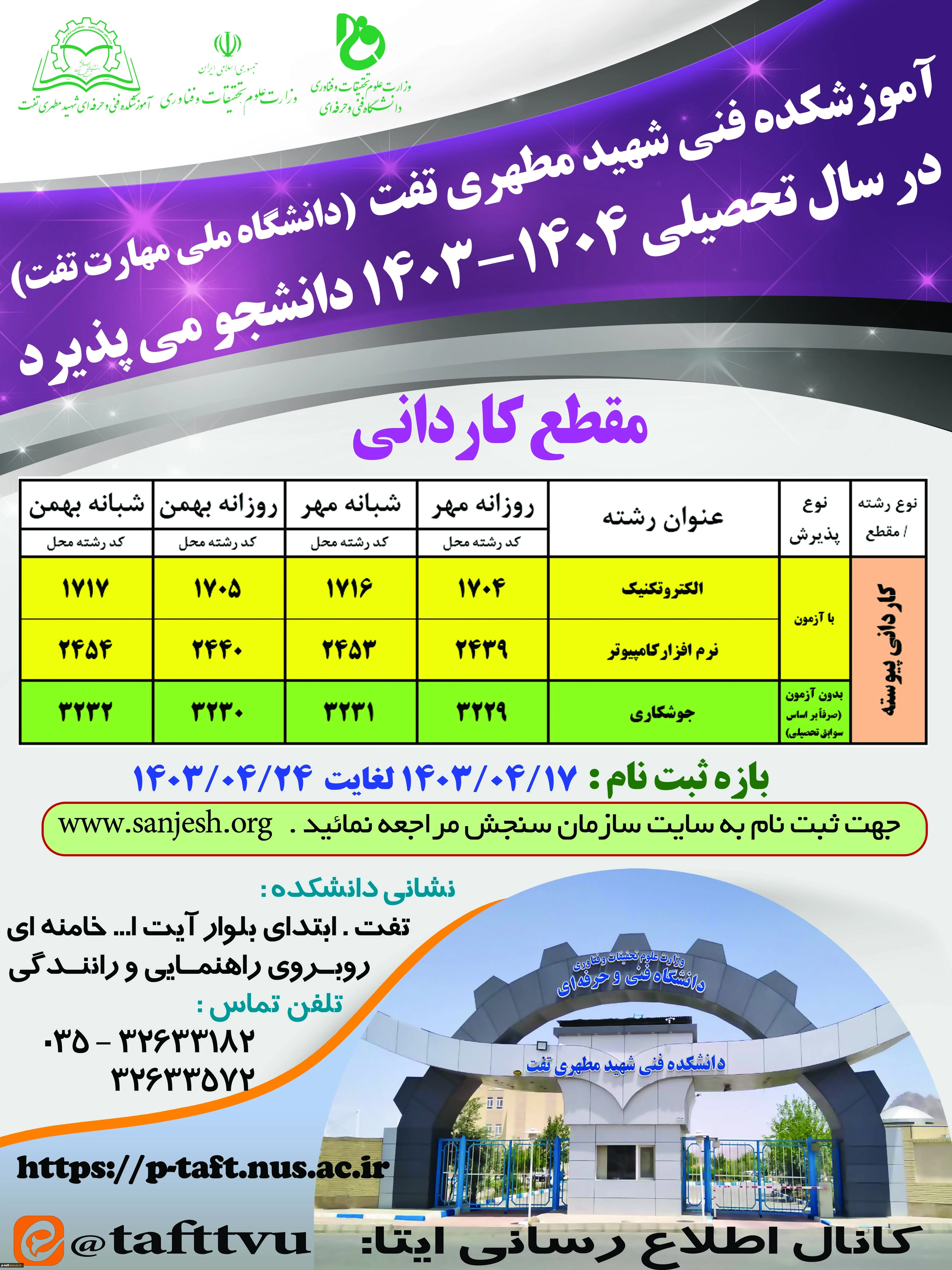 اطلاعیه پذیرش دانشجوی کاردانی سال ۱۴۰۳ 2