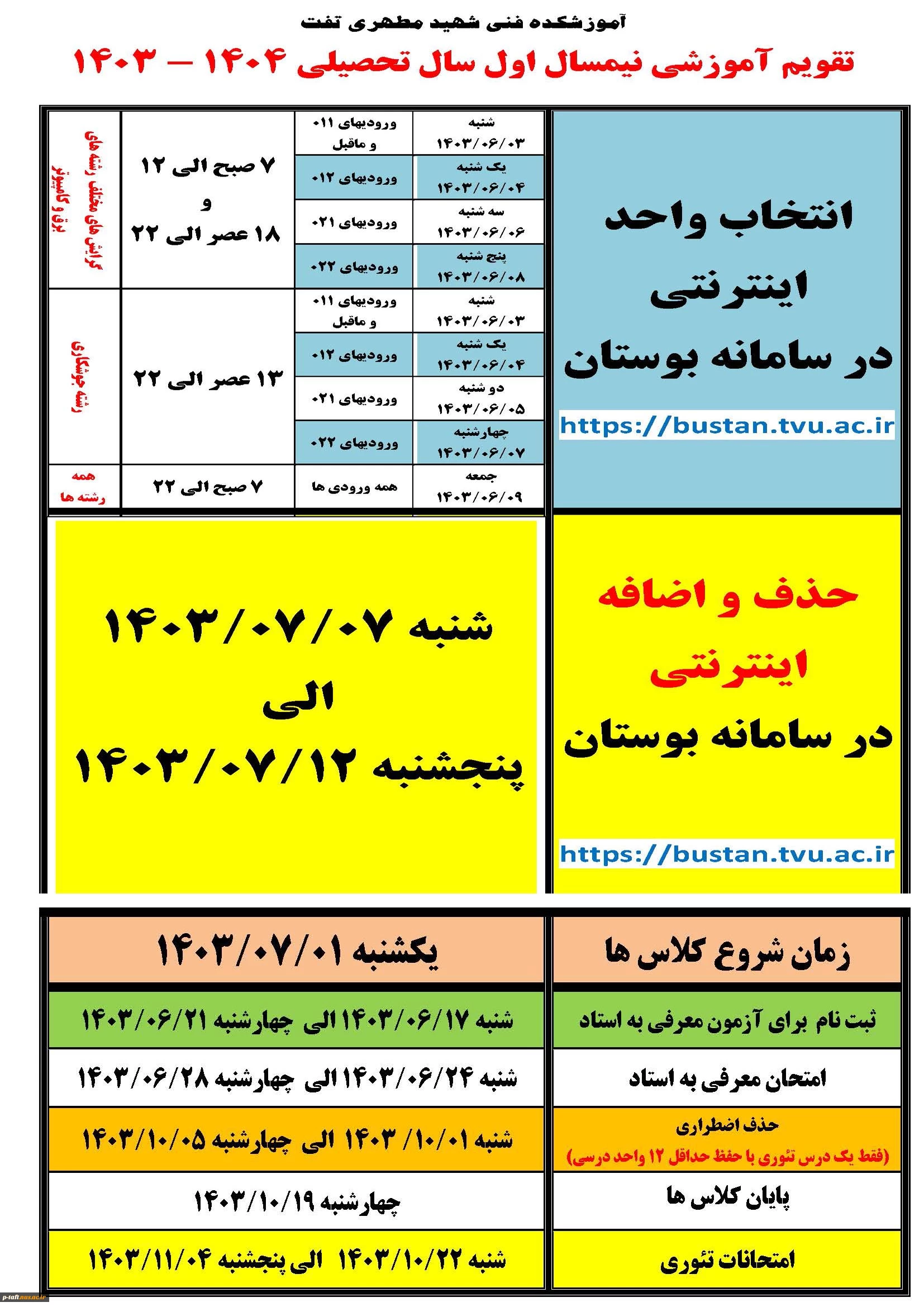 تقویم آموزشی نیمسال اول سال تحصیلی 1404-1403 2